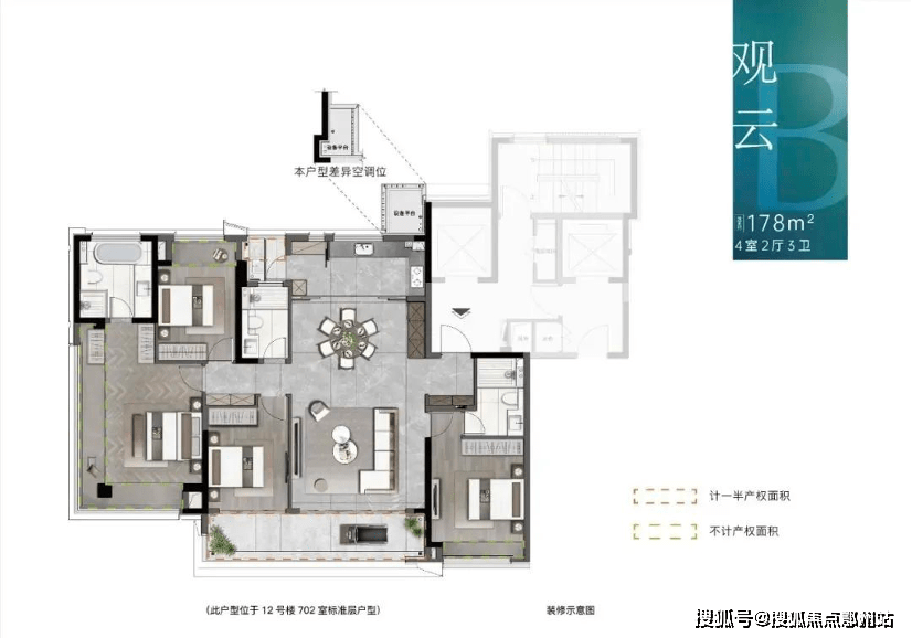约1200㎡中央度假水景、约200m风雨归家连廊,约170㎡景观会客厅、约300㎡儿童乐园、约130㎡长者空间等,创造出了更具有艺术性的低密洄游度假花园。